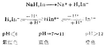 在PH<6或PH>12时,游离的指示剂与形成金属离子配合物的颜色没有明显的区别,在PH=7~11的溶液里指示剂显蓝色,而与金属离子生成的配合物为红色,颜色有极明显的差别。所以用铬黑T作指示剂时,PH值应控制在7~11的范围内,最适宜的PH值为9~10.5。例如,用EDTA滴定Mg2+时,先在被测溶液中加入NH+4-NH3·H2O缓冲溶液,将PH值控制在10左右,然后加铬黑T作指示剂数滴,用0.02mol·L-1EDTA标准溶液滴定。