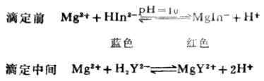 滴定终点时,由MgIn-的红色转变为HIn2-的蓝色。