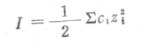 例3 已知25℃时,0.1mol·L-1KCL溶液中,离子的平均活度系数为0.769,求离子的平均活度. 解:已知f±=0.769 c=0.1 mol·L-1 α±=0.769×0.1=0.0769×mol·L-1 (三)离子强度 溶液中离子的活度系数不仅与它的浓度有关,并且还与溶液中其它各种离子的总浓度和离子的电荷数有关,但与离子的种类无关.因此,溶液中离子的浓度和离子的电荷数就成为影响离子活度系数的主要因素.为了阐明离子浓度和离子电荷数对离子活度的影响,引入了离子度的概念.离子强度表示溶液中离子所产生的电场强度.它是溶液中各种离子的量浓度乘以离子电荷数的平方总和的二分之一