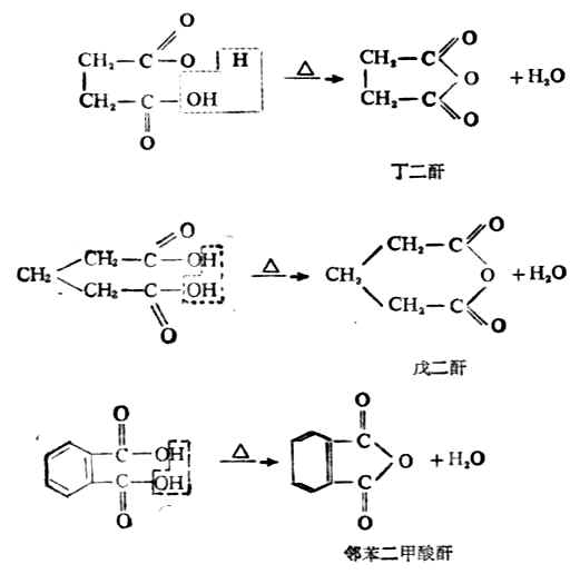 2.丁二酸、戊二酸及邻苯二甲酸 这三种酸与脱水剂共热时失水,生成环状酸酐。