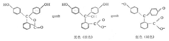 HIn表示弱酸的分子,为酸色成分;In-是弱酸分子离解出H+以后的复杂离子,为碱色成分。酚酞的酸色成分是无色的,碱色的成分则呈红色。根据平衡原理: