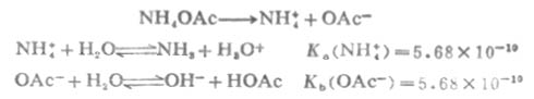 (二)、弱酸弱碱盐溶液的PH值 NH4OAc是两性物质。在溶液中,