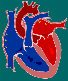 心有四个腔,分别是左、右心房和左、右心室。 Heart has four chambers, namely the right and left atrium and the left and right ventricle. 心房间有房间隔,心室间有室间隔。 The rooms have atrial septal heart, between ventricular septal there.