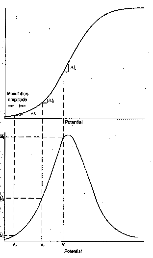 recorded as a function of the applied voltage. The resulting voltammogram is nearly the derivative of a DC