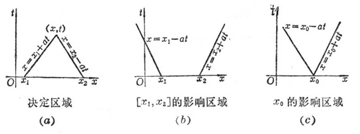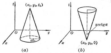 Then the normal direction l of the plane passing through x ° : ( a 1 , a 2 , … , a n ) is called the characteristic direction of the second-order equation; if a ( n ) dimensional surface, the normal direction of each point is If the direction of the normal line is the characteristic direction, the surface is called the characteristic surface, and the conical surface formed by the envelope of the characteristic plane at one point is called the characteristic surface . Feature cone .![]()