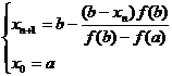 Assuming that f ( x ) is continuous on [ a , b ] , , are invariant, and f ( a ) f ( b )<0 (it is assumed here that f ( a ) <0, f ( b )>0 ) . The line at points ( a , f ( a )) and ( b , f ( b )) is:![]()