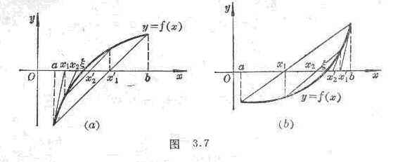 Let f ( x ) be continuous on [ a , b ] and also be continuous, and 1 0, 1 0 , f ( a ) f ( b )<0 (let f ( a )<0, f ( b )>0 ) , through the point ( a , f ( a )) (or the point ( b , f ( b ) ) ) as a tangent to the curve:![]()