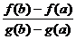 [ Cauchy's theorem ]   If (i) the functions f ( t ) and g ( t ) are continuous in the closed interval [ a , b ] , (ii) have finite derivatives in the open interval ( a , b ) , and (iii) are in the open interval ( a , b ) In the interval ( a , b ) 0. Then there is at least a point c between a and b such that